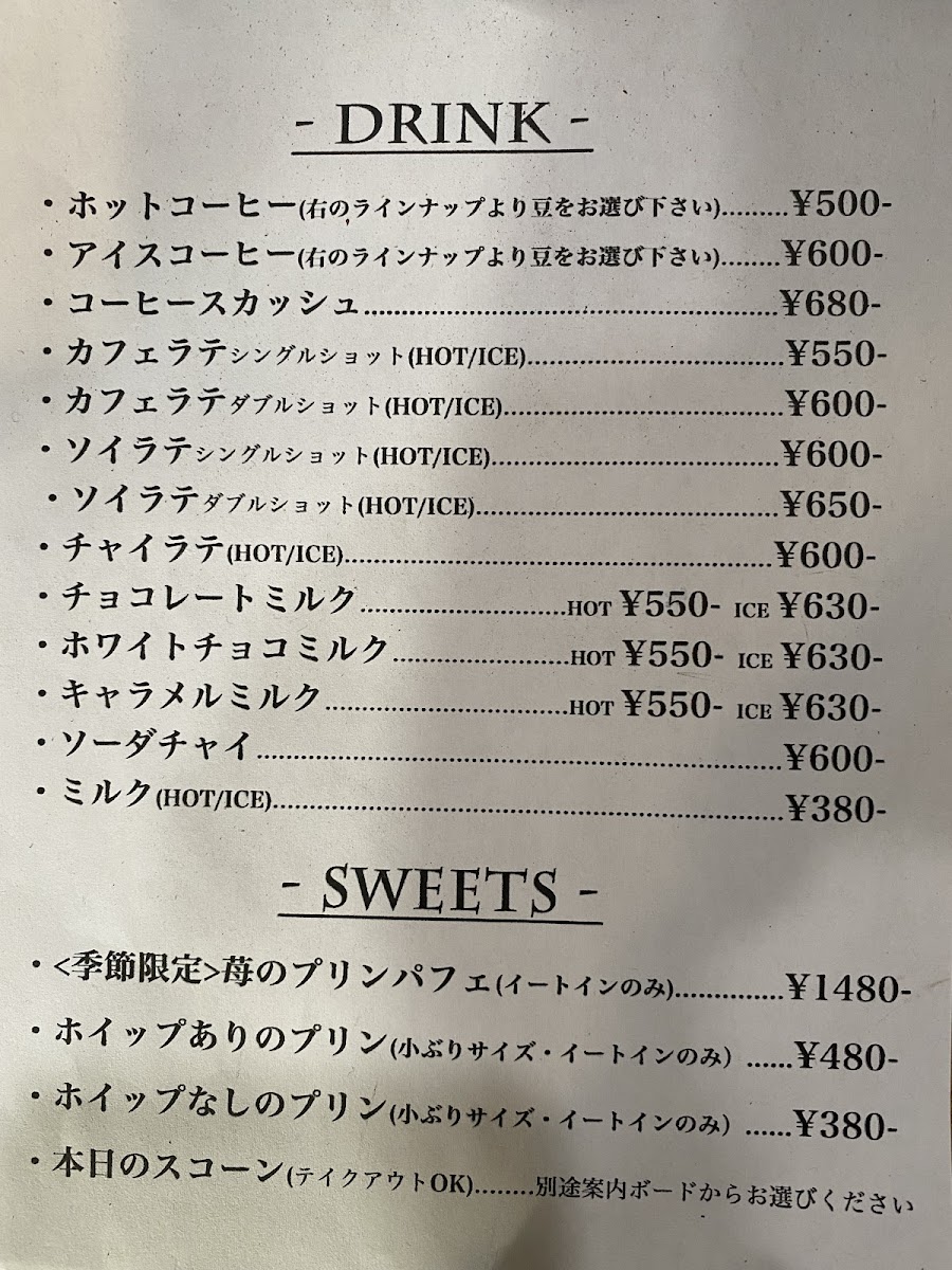The menu features standout offerings like the タイ ファイマイリアムマーレーン ホワイトハニー coffee, known for its refreshing citrus notes and smooth texture. For those with a sweet tooth, the あんことお餅のチョコレートスコーン is a delightful fusion of Japanese and Western flavors, complementing the rich coffee beautifully. Don’t miss their homemade pudding, which boasts the perfect balance of richness and nostalgic caramel.